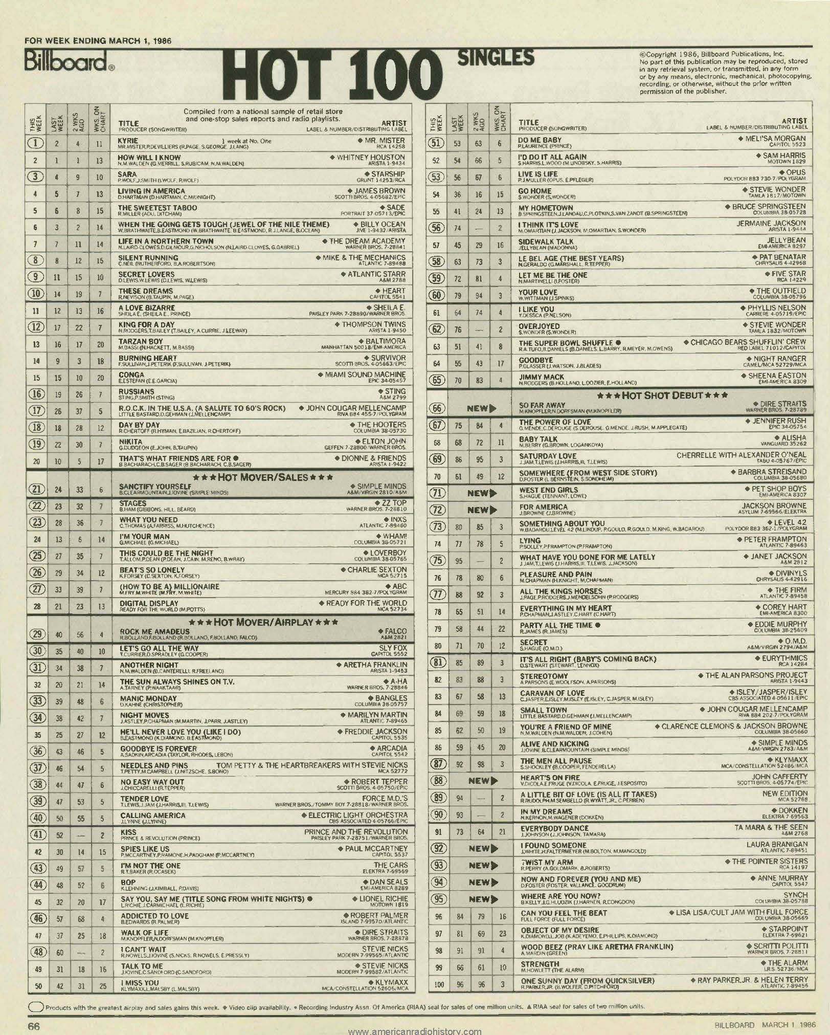 | THIS WEEK ON THE CHARTS March 1, 1986 |